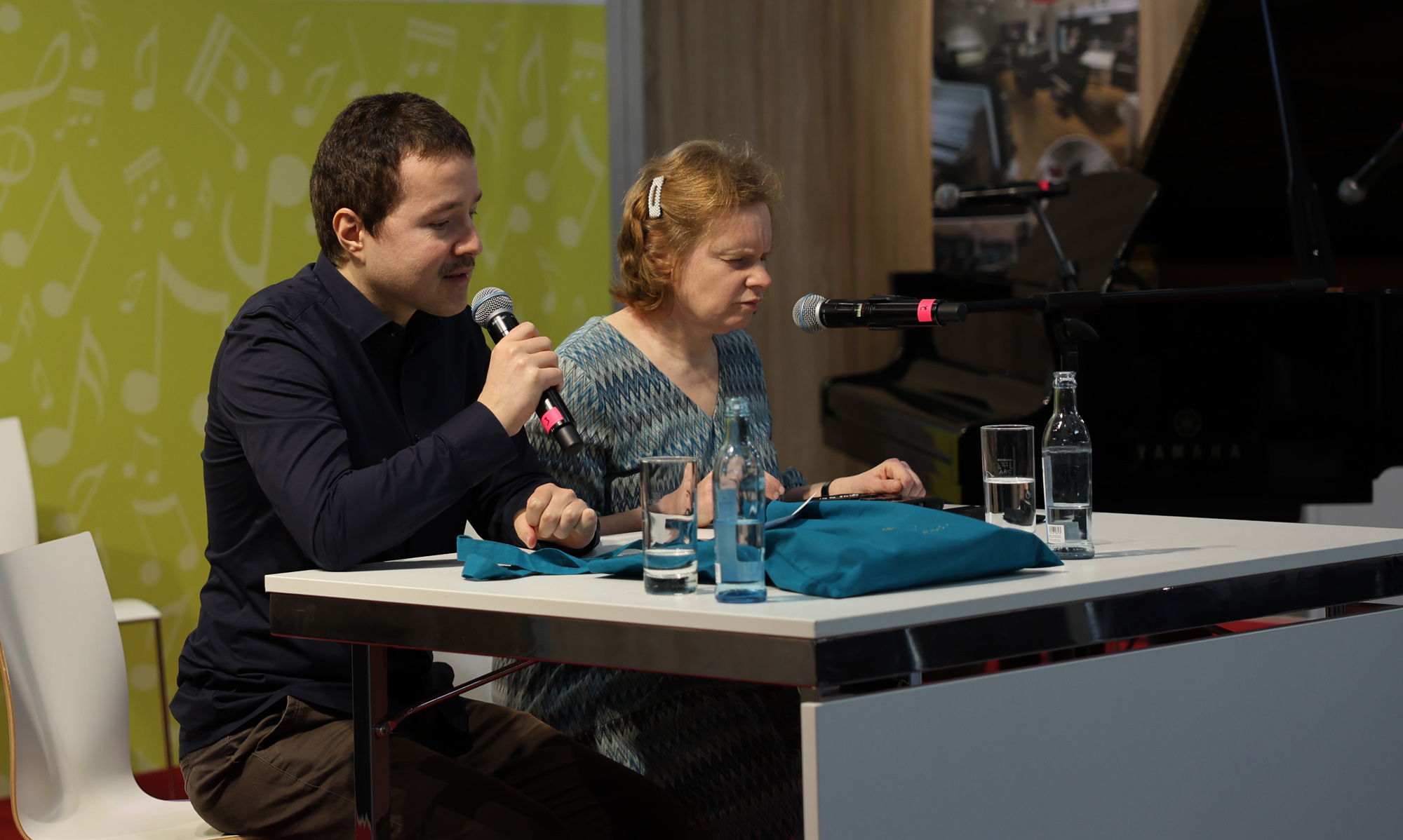 Die engagierte Frau, die als Übersetzerin und im dzb lesen als Korrekturleserin tätig ist, war auch am Buchmesse-Freitag auf dem Messegelände aktiv. Gemeinsam mit René Holzhauer informierte sie im Musikcafé in Halle 2 über das Musikprojekt „Do it!“, das vom Förderverein des dzb lesen „Freunde des barrierefreien Lesens e.V.“ organisiert wurde und stellte die Braillenotenschrift sowie DaCapo, die Braillenotenproduktion im dzb lesen, vor.
